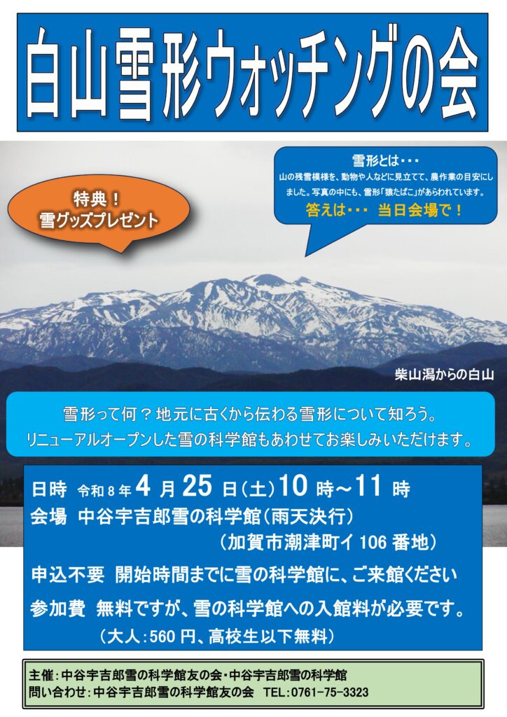 4月25日(土)「白山雪形ウォッチング」開催